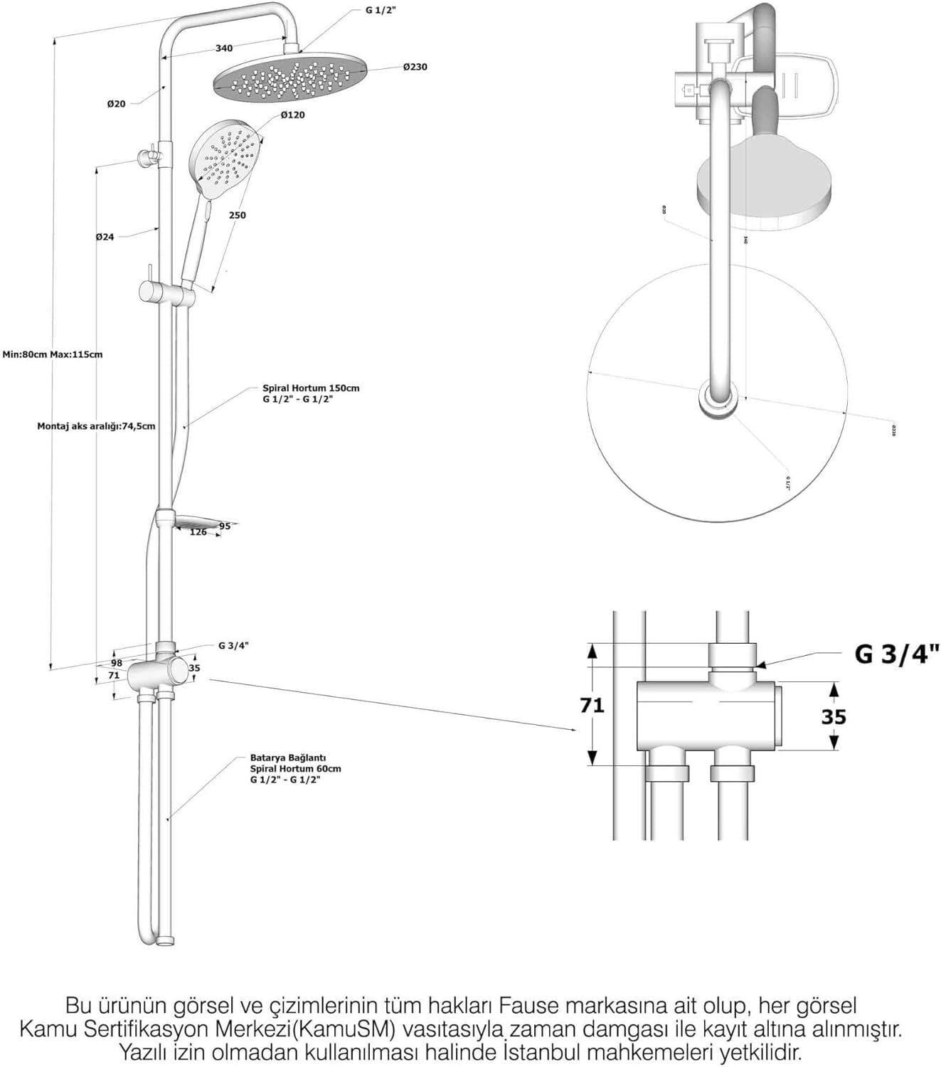 - • 150 cm den 180 cm ye uzayabilen, çift kenetli, EPDM iç hortumu, uçları ve somunları pirinç, kromlu paslanmaz çelik duş hortumu